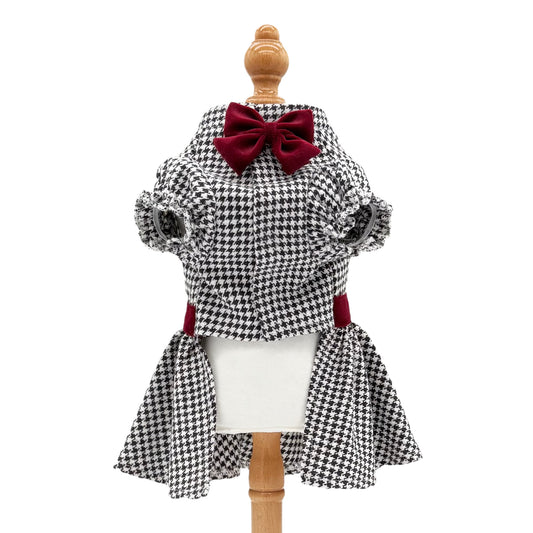 千鳥柄リボンワンピース ホワイト