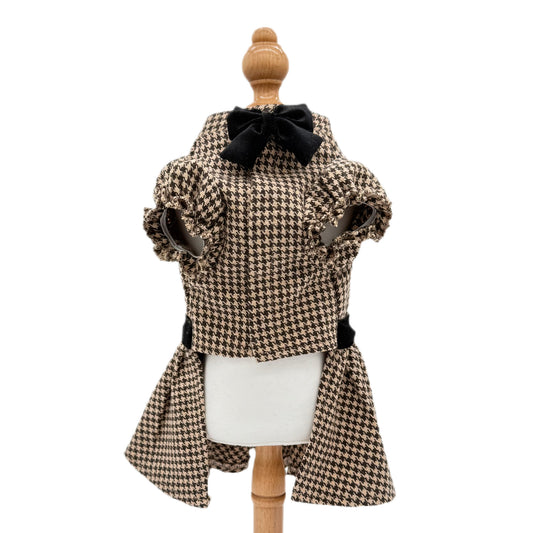 千鳥柄リボンワンピース ブラウン
