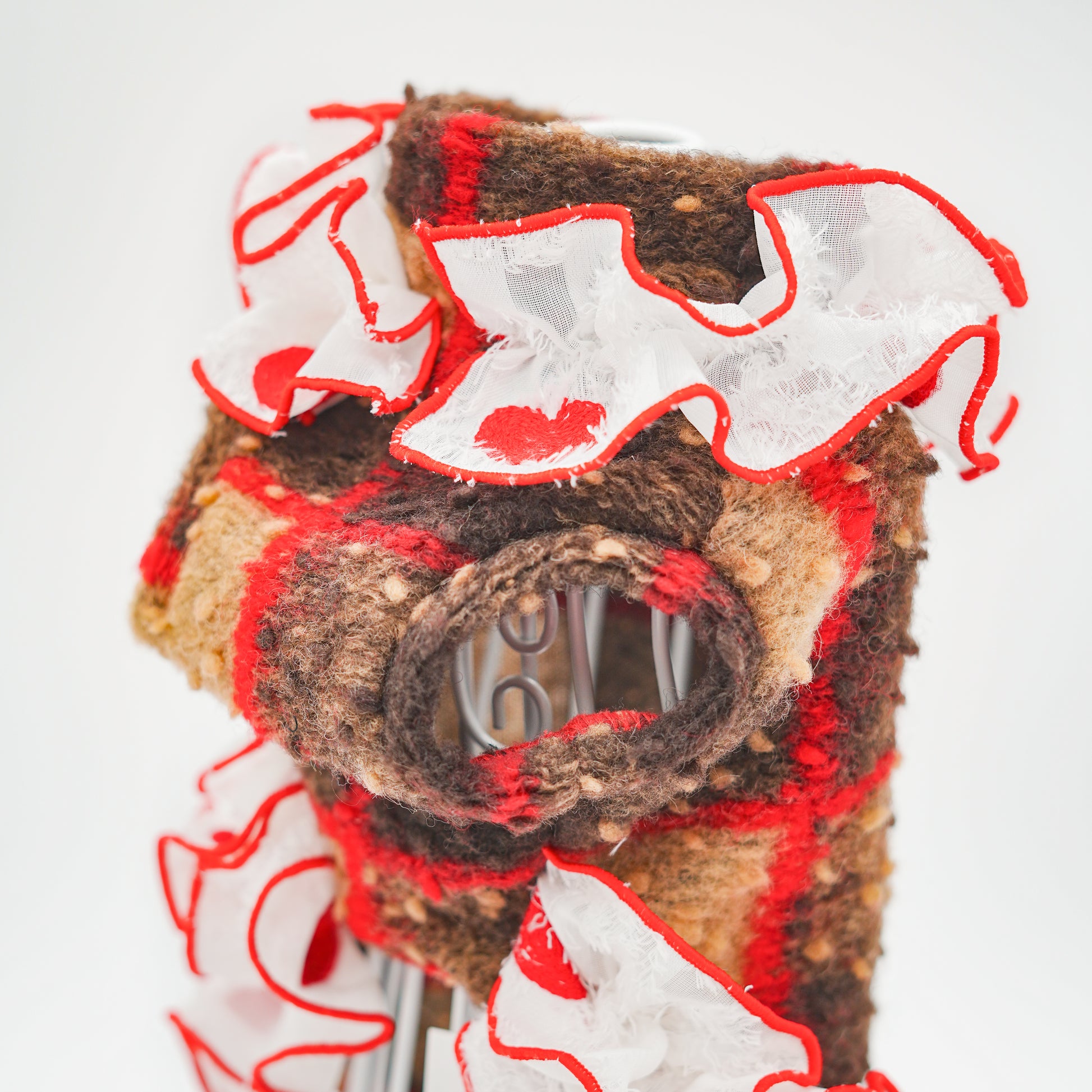 イタリア製スライバーニット生地を使用した、さりげないハート柄のフリルが可愛いトップス。