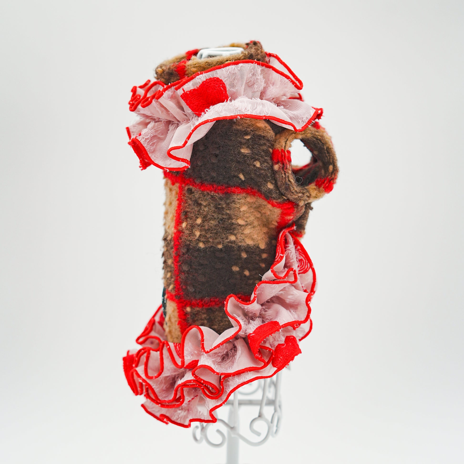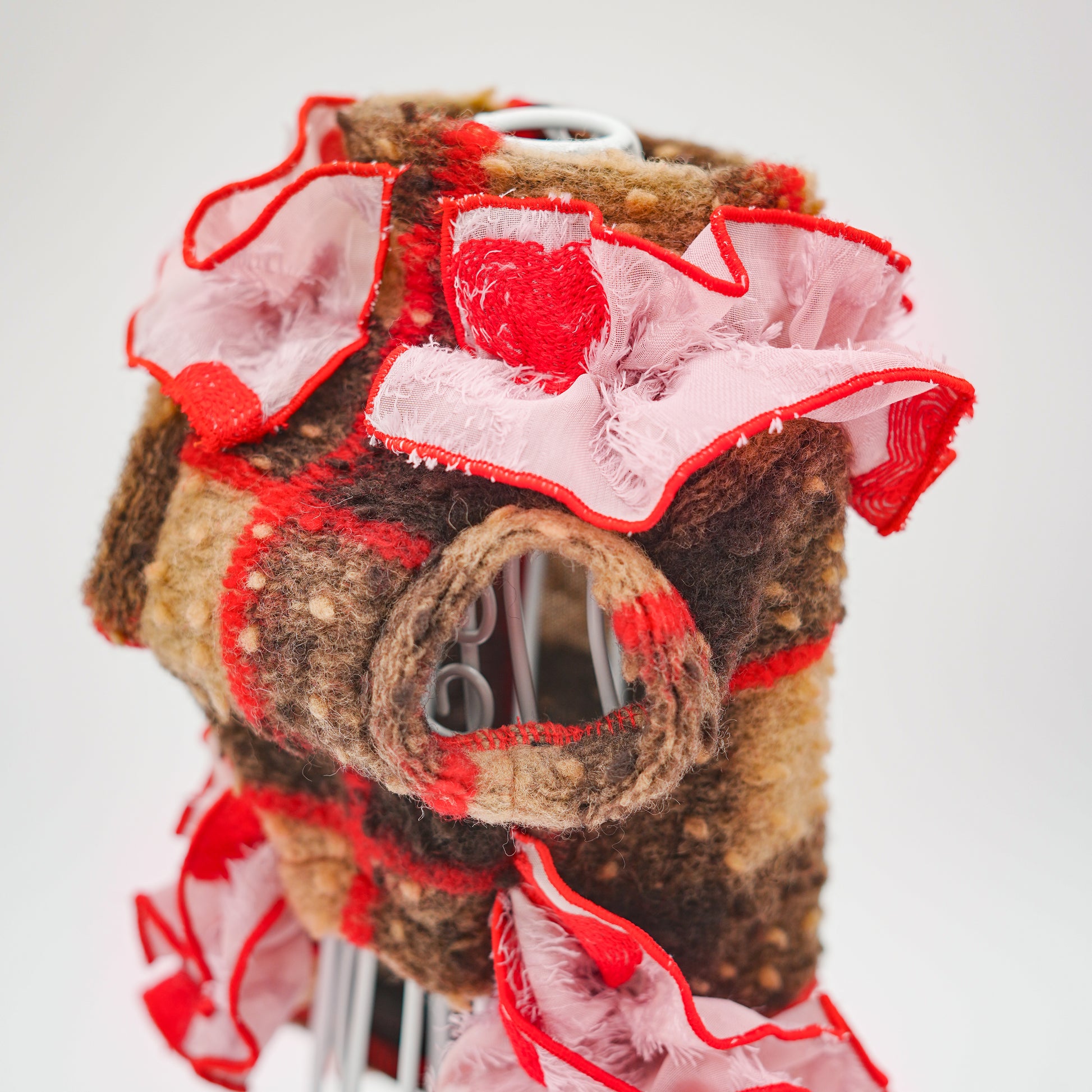 イタリア製スライバーニット生地を使用した、さりげないハート柄のフリルが可愛いトップス。