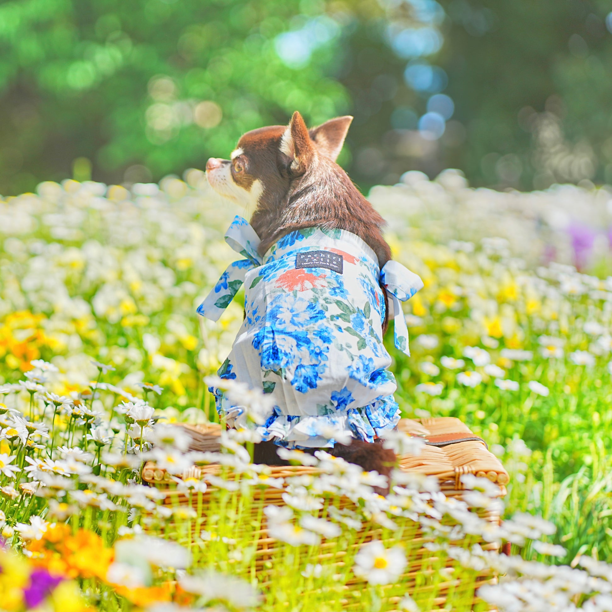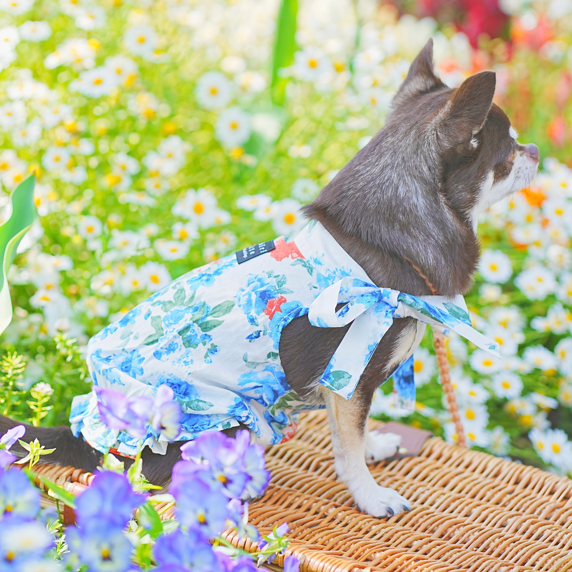 暑い日でもおしゃれを楽しみたいわんちゃんのために、夏場にさらりと着ていただけるよう薄手の生地でお作りしました。